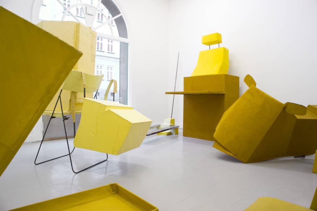 Ihre Größe orientiert sich meist am menschlichen Körper. Ich verwende eine Mischung aus beständigen und eher fragilen Materialien – geschweißten Stahl mit Papier und Stoff. Die Plastiken beziehen ihre Energie aus meiner direkten Umgebung. Der gemeinsame Raum ist etwas, das wir schaffen, aber genauso oft wird uns die Auseinandersetzung mit ihm aufgezwungen, ob wir wollen oder nicht. Wichtige Begriffe meiner künstlerischen Praxis sind Apathie, Beschleunigung, Akkumulation und Produktion sowie Ähnlichkeit und Handhabbarkeit.