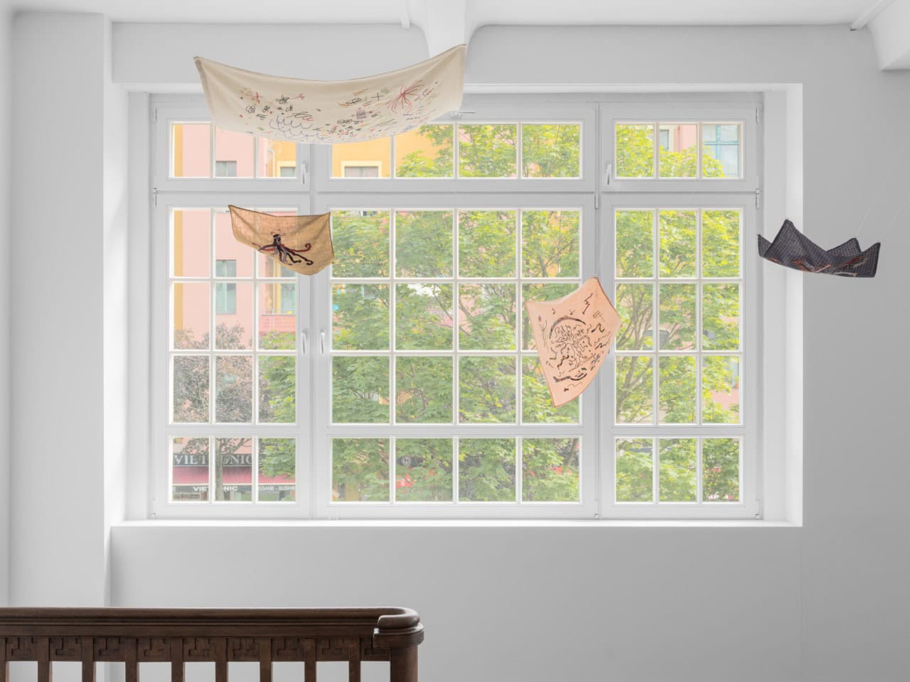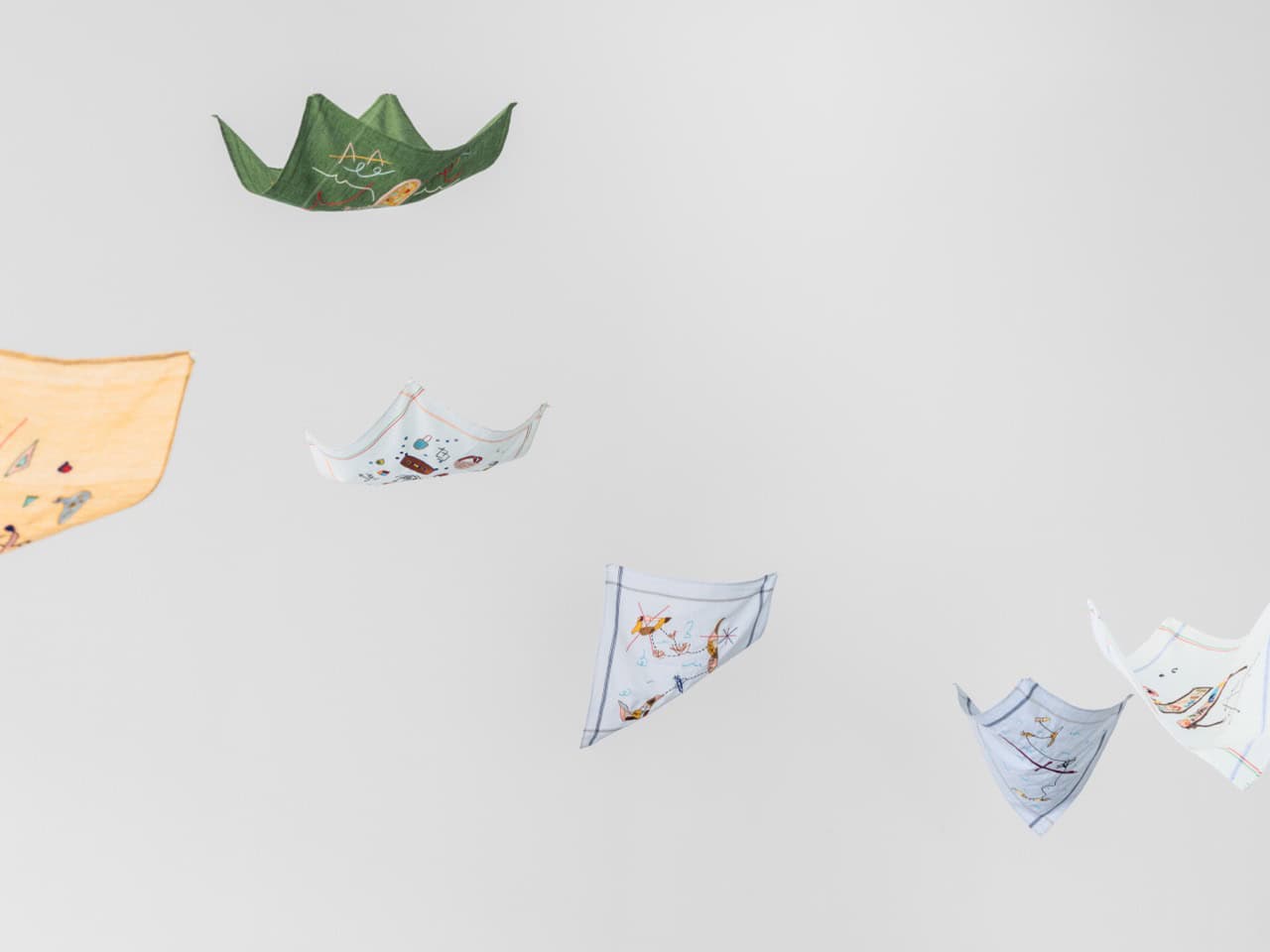 On various media – textiles, paper, earth, sound – Areez Katki writes and reworks a biomythography in which the fabulous and the historical are interwoven into forms of expression that defy clear categorization. Migrant narratives have no clear beginnings or endings – rather, they are characterized by learning and unlearning processes. Reflecting on concepts of embodied hybridity and (extra)ordinary affects that are carried with currents and winds across continents, Areez Katki’s narrative voice finds the polyphony that emerges when there is no solid ground to stand on.