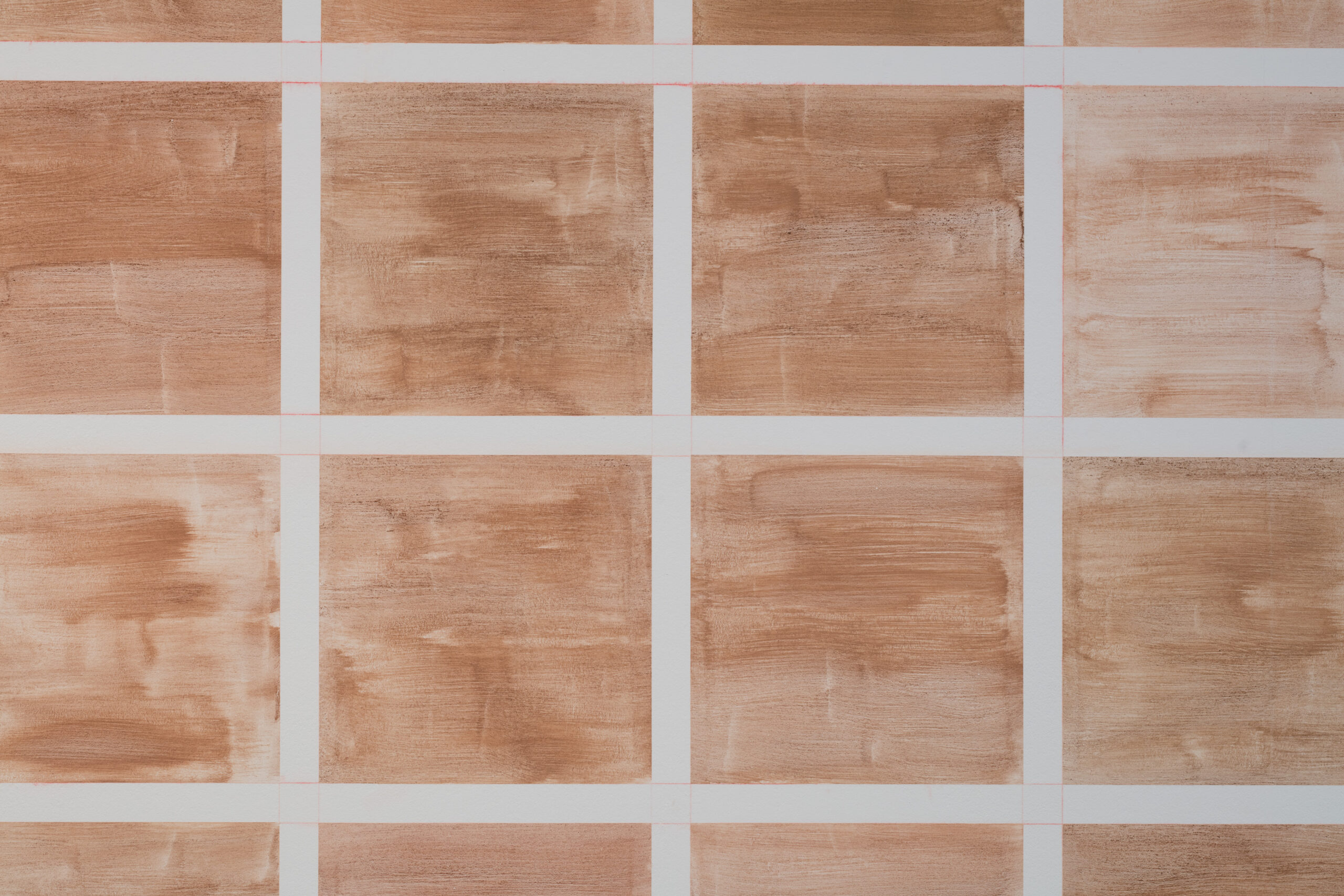 In the exhibition space we see two new, full-wall versions of her earlier work Eye Eye (2018), for which she fired tiles from the clay soil of her home region and mounted them across the wall in a grid-like pattern. Here, she uses the pigment powder of the crushed tiles to paint on the wall, and creates a grid of different square ‘portals’, through which the viewer ‘sees into’ the earth, rather than being able to see onto it, like through (the colonial construct of) a window. Repetition, “iterative representation” is an important factor for Stewart, as history can be understood through “multiple (re-) mediations”. The work Potato Gardens Band is shown as a large-format video projection: it comprised an action by the artist on the land belonging to her family and was set up especially for the purpose: we hear the voice, recorded a long time ago on wax cylinders, of Krista Belle’s great-grandmother, singing the music she composed. The wax cylinders are part of the collection of the National Gallery of Canada from which the artist liberated them in order to make them heard in the family circle, on the land of their origin; fragmented by natural sounds and the noise of the wind, and also by the spatial distance she herself adopted for the recording.