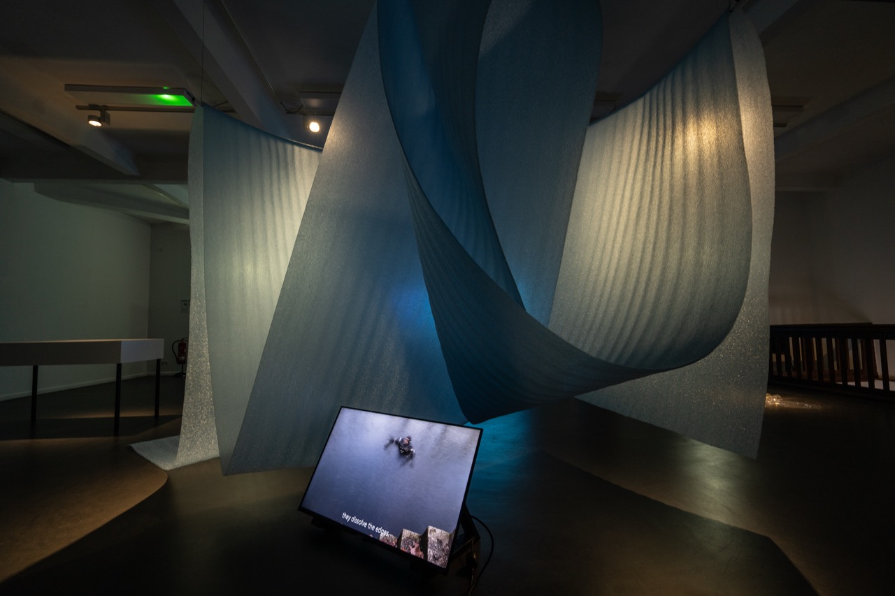 Waters, this deep, curated by Linnéa Meiners, is the fifth chapter of the Becoming B series at Künstlerhaus Bethanien. Nnenna Onuoha and Om Bori explore the proximity of Künstlerhaus Bethanien to the Landwehr Canal in their work.