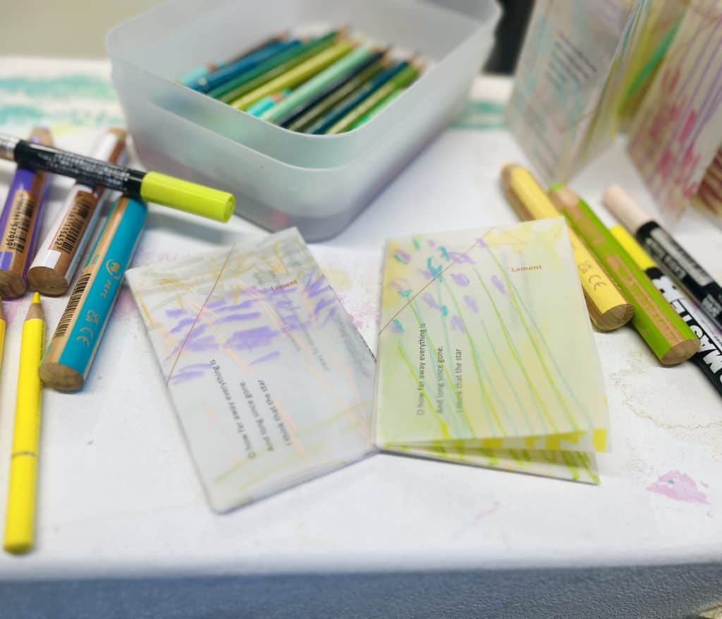 Im Rahmen der Finissage ihrer Ausstellung im Künstlerhaus Bethanien lädt Artist-in-Residence Natsuki Oshiro die Besucher*innen zum Workshop Landscapes of Poetry ein. In Erweiterung ihrer multidisziplinären Praxis, in der Poesie, Malerei und Zeichnung ineinanderfließen, werden die Teilnehmer*innen dazu angeregt, sich körperlich zu beteiligen, indem sie kleine Zines falten und darauf zeichnen. Ausgehend von Rainer Maria Rilkes Klage, einem Gedicht über Sterne und den Nachthimmel, erweitert der Workshop die Ausstellung zu einem performativen, intimen Akt des Schaffens. Ausgehend von Natsuki Oshiros grafischer Erkundung wechselnder Blickwinkel innerhalb einer Landschaft schaffen die Besucher*innen ein dreidimensionales Objekt, das zu einem Gefäß für ihre eigenen Interpretationen von Landschaft und Versen wird. Unter Anleitung der Künstlerin bietet der Workshop einen gemeinsamen Raum, um miteinander und mit ihren sich entwickelnden Ideen in Kontakt zu treten.